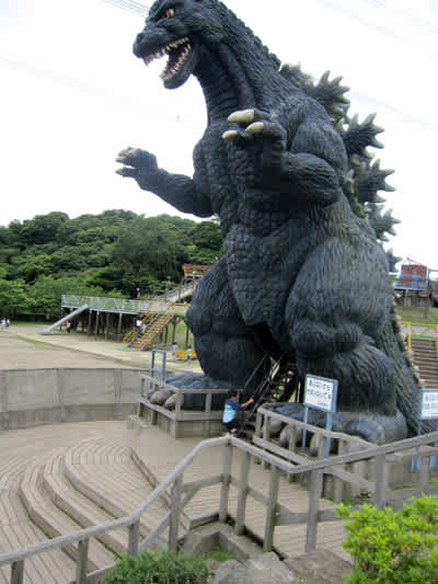 こちらの公園の最大のシンボルは、このすべり台になってるゴジラです。