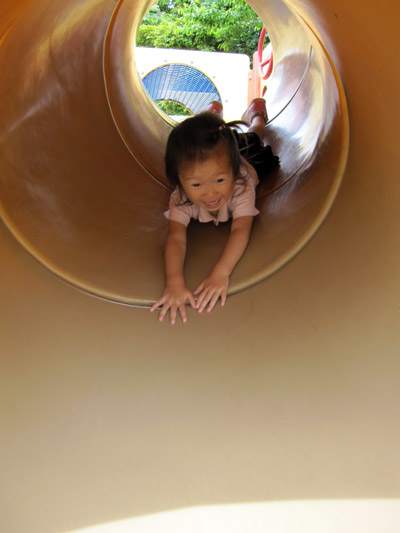 すべり台だって、頭から颯斗が滑るもんなら、りこも迷わず頭からいきます(焦)