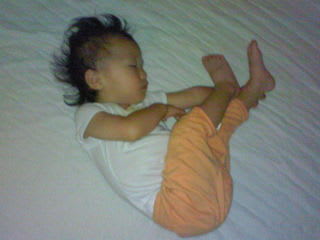こんな寝方ができるのは、小さな子供だけ!! ってか、ホント体が軟らかいんだね~(◎-◎;) 颯斗の髪の毛、ずいぶんフサフサに見えるゎ♪
