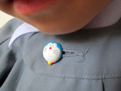 3年間毎日、『早く着替えなさい!』と、これ?も愛情たっぷりの雷を食らいながら・・お気に入りのドラえもんのボタンをして通った幼稚園。