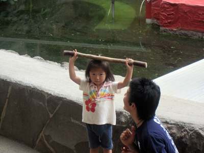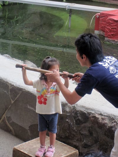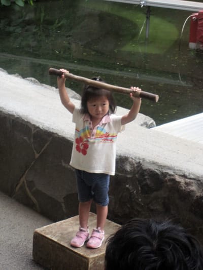 それではお手伝いをしてもらいます~と、りこに木の棒が渡されます。