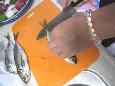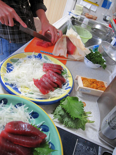子供達も大満足で、実家に戻り・・買ってきた刺身を調理です♪