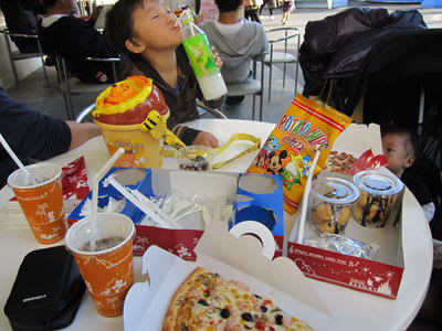 ミッキ~って叫んだら、みんなお腹が空いてしまったので、パレード後に遅い昼食を取りました。