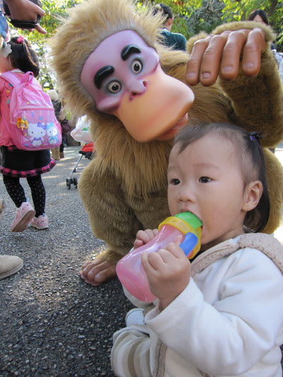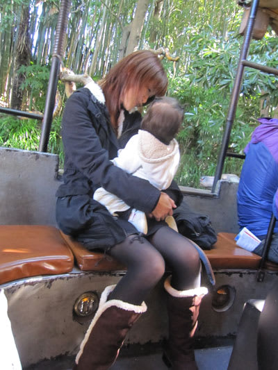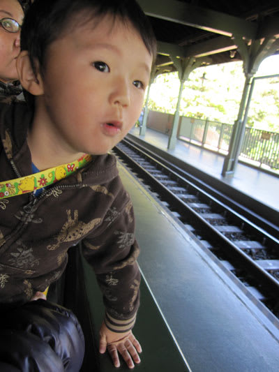 そして・・・前回よりも成長した璃心!そんなんだから、周りの状況がよくわかるようで、前半はそれこそご機嫌に、機関車からの景色を満喫し、インディアンなんかに手を振ったりとしていましたが、後半洞窟の中の恐竜にギャン泣きしていました(笑)