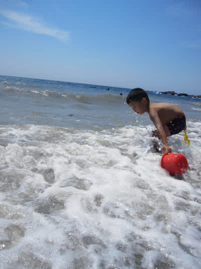 (まっててね、お魚つかまえてくるから・・って、バケツ1つで戦ってかっくいいね)