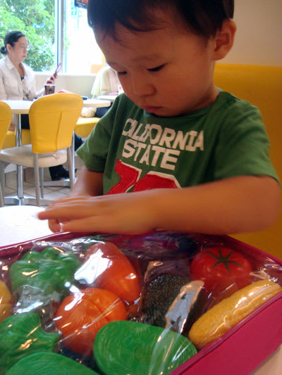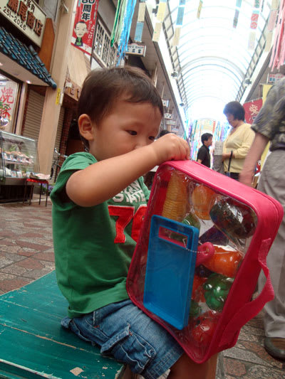 マックを出て、買出しに寄った横浜橋商店街でも、お気に入りのおままごとセットを持ち歩いて・・隙が開けば、開けては閉めて(笑)