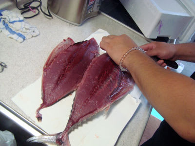 さっ!頂いたカツオを私たちもさばきますかぁ。
