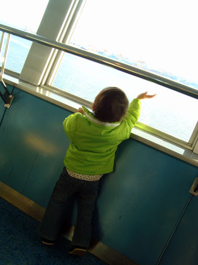 見て下さい!うちの颯斗は、通る船。通る船に元気一杯手を振っています♪