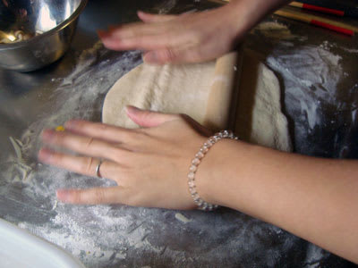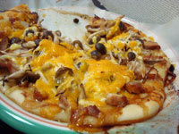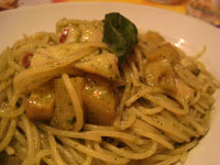 今日のメニューは、照り焼きチキンピザと山盛りネギのと挽肉ピザ。それに、ミートソーススパゲティーの生クリームのせでした。