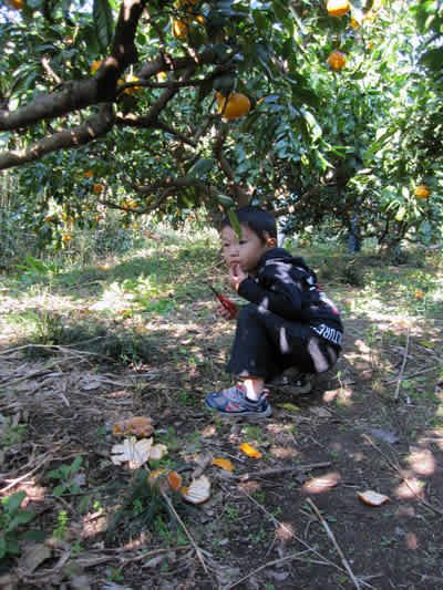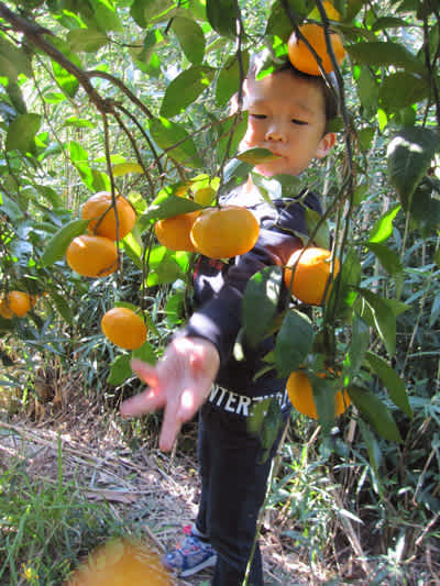 手を伸ばして届く所のみかんを採る採る!もう~何もお構い無で採る!採る(笑)