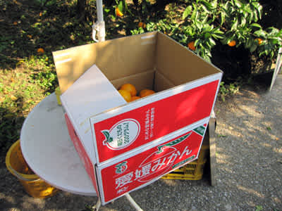 会計の際に、やたら農家の人が『ありがとう。ありがとう。』言ってるし、ダンボールも用意が無くて、その辺に無造作に置いてある、『愛媛のみかん』のダンボールに入れられたし・・