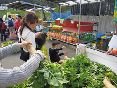 収穫して、そのまま軽の荷台に乗っけて売りに来ましたよ~状態(´▽`)ノ