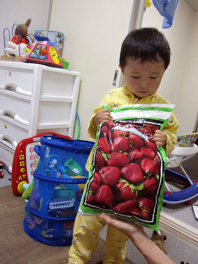 今日も、颯斗とのっちょは、この冷凍いちごとバナナと牛乳でスムージーを作り飲んでいましたが、私は、またピーピーになるのがこわくてやめましたが、マックシェイクより絶品らしいですよ♪