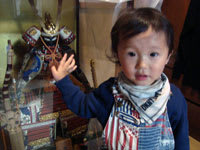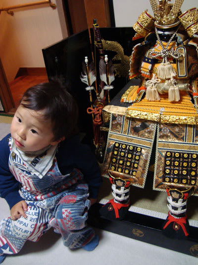 そんな願いを込めて・・実家に飾られた鎧兜の前でパシャリ★