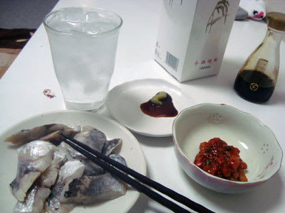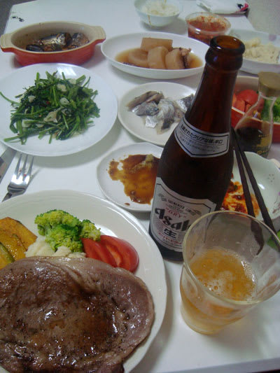 家に帰り、昨日知り合いから頂いた〆鯵と商店街で買ったチャンジャをつまみに一杯やりながら、ステーキが出てくるのを待ちました。。