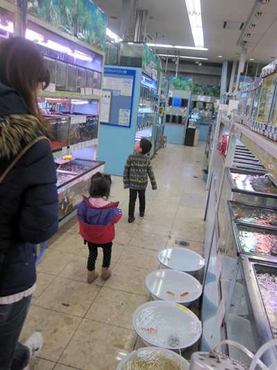 この日も、母上は、熱帯魚は買うは、水草は買うは、でっかいまりもは買うは、実家にいる犬のえさは買いまくるは、しまいには鳥のインコまで買うといいだしたので、今日はやめれば?と・・
