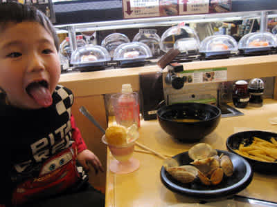 そんで、昼は、くら寿司フェチの颯斗の要望で寿司を喰いに行きました。