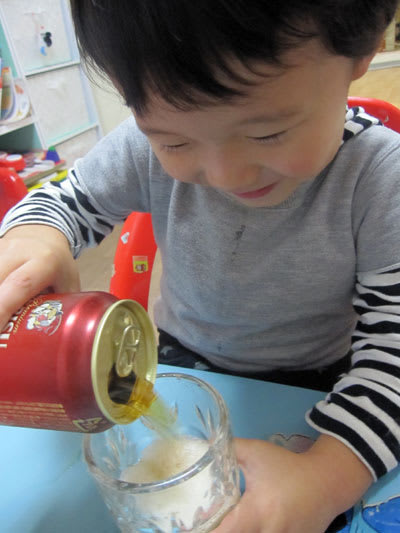 『ふうとビールいれるね♪』