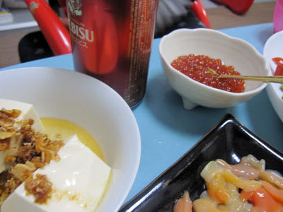『そして、大好きな手作り食べるラー油をかけた奴さんと、イクラで~す♪』