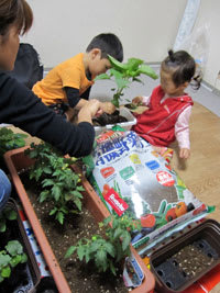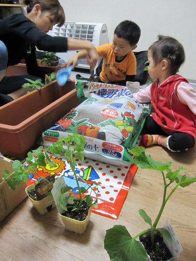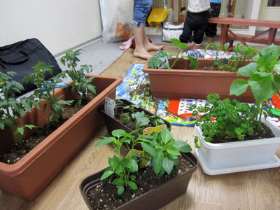 まだまだ雨が降っておりますので、恒例の『お家で土いじり』を行いました。