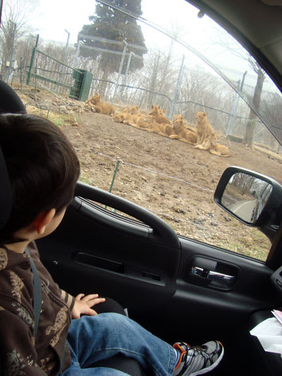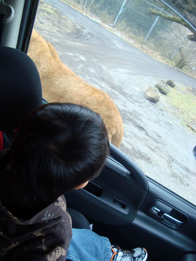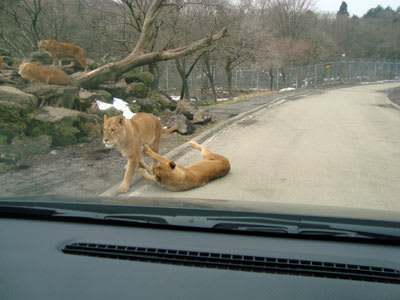 こえ~と私も、大興奮。車の真横を通るとき、ライオン群れの中に居る時、やっぱりすげ~恐いですもんね。