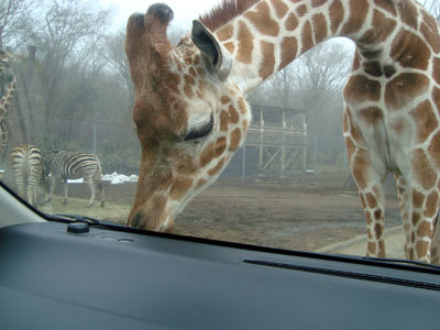 『キリンさんいっぱいいるよ!』と興奮している颯斗の為に、ベストポディションで路駐した所、1匹のキリンさんが、私の愛車の前に立ち、フロントガラスやボンネットを舐め始めました。