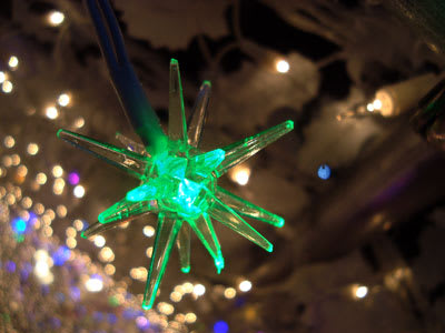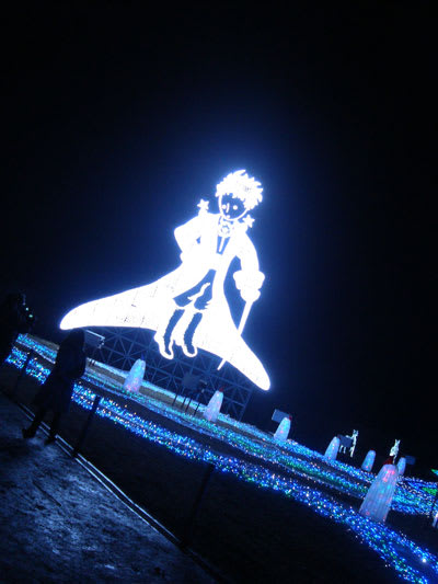 時間になると、15mの星の王子様が消え、音楽と共に、レーザー光線のようなのが、みるみる形をかえて、オーロラになるんです。