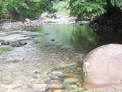 すぐさま、川におりて顔を洗います。