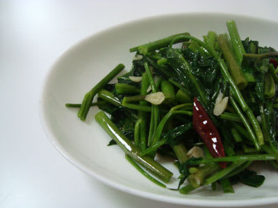例えば、おとといの夕食『モツ煮』。それと餃子と『空芯菜』。