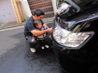 いつもは一緒にやる颯斗は幼稚園でしたので、寂しく1人での洗車かぁ~なんて思っていたら、我が家の上戸彩(璃心)が手伝い?にきてくれました。