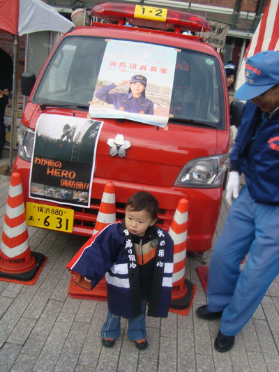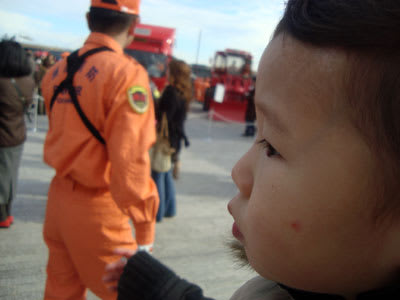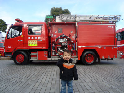 今日、赤レンガ倉庫で横浜市安全管理局主催の「新春安全・安心フェスティバル」が開催されるのを知り、私は仕事で行けなかったのですが、のっちょが颯斗を連れて行ってくれました♪