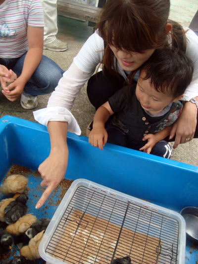 それに、なんだか時間になると、ヒヨコや、モルモット、うさぎやヤギ、ニワトリや羊、牛に豚まで、自由に触れるんです。