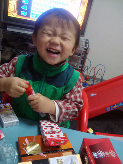 大好きなチョコが、何でこんなにあるんだ?と思ったんじゃないかな(笑)