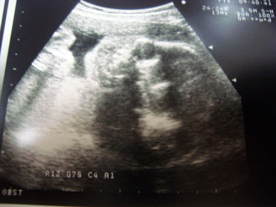 丁度、お股を閉じちゃっているみたいで、先生がお腹とかを叩いて、体勢を変えようとしてくれたんですが・・ダメだった。