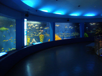 館内は、片側に水槽があって、さまざまな魚が泳いでいます。