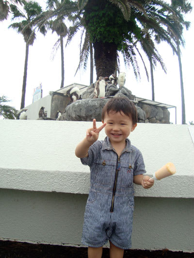 ヤシの木に囲まれたプールには、沢山のペンギンがいました。そんなペンギンの餌付けなどを、興味津々に見学したり、記念写真を撮ったり、ペンギンを満喫していました。
