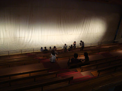 バックに海もないし、室内の劇場といった様子。かなり大きな階段上の座席で、傾斜もかなりあります。