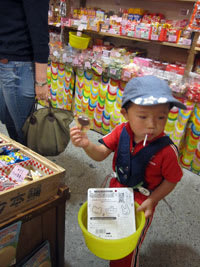 のっちょが、璃心の授乳中に、駄菓子屋でお菓子もいっぱい買いました♪