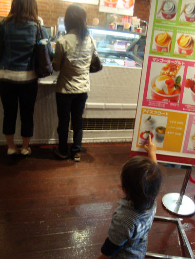 赤レンガでは、颯斗は自分で選んだ、バナナフロート・トッピングでバニラアイスのLを飲みながら潮風あびて休憩。