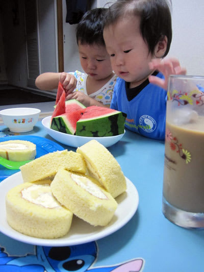 昨日までは、颯斗と取り合うようにスイカ食べてたのに