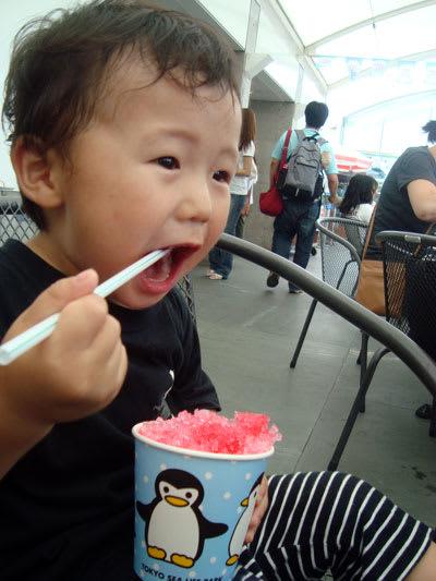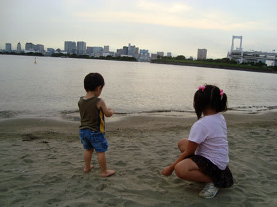 海で、ちょこっと水遊びもしたかったから、江ノ島も考えたんですが、あっちは混んでるもんね。。葛西の後にお台場で遊べばいいや!って事で来たんだけど、やっぱり正解でした♪葛西は楽々です♪