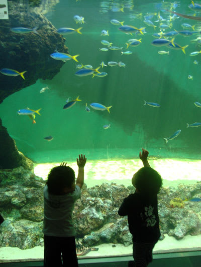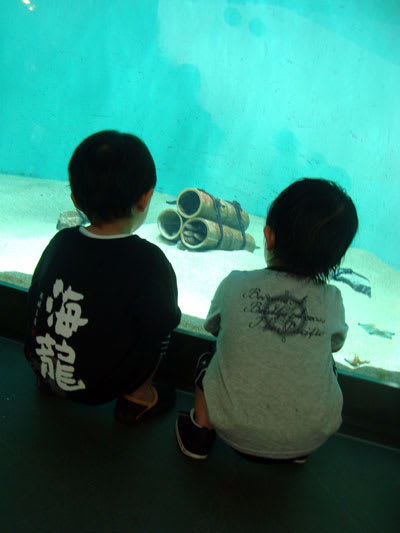 きれいな色の魚、変わった姿の魚など、親がこれを見せたい!と思うものに限って、子供は興味が無さそげに行ってしまう。逆に、私たちがスルーする水槽の前などのに、異様に張り付き興味を持つのです。