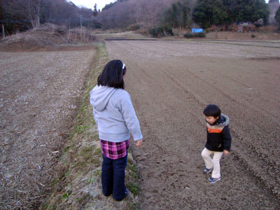 いつもは、水がはられてる田んぼも、今の時期は水も抜かれてるから、田んぼの中を歩いて、普段家の周りでは見れない景色、味わえない空気を、子供達は満喫していました♪