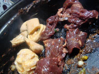 もんじゃの後は、締めで・・その鉄板で、かるい焼肉。または、焼きそばをやります!それが1つ拘りです。