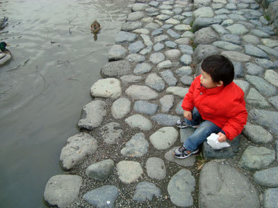 でも、この後、カモに餌やってたら、鳩が大量に来てびっくりしちゃいました。