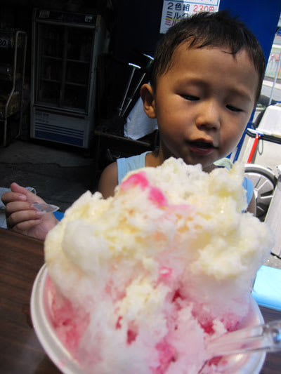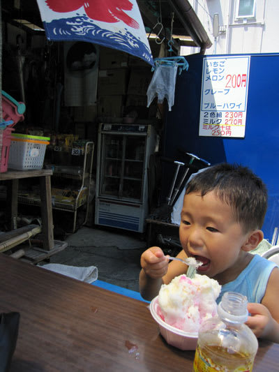 おばちゃんは、相変わらずしゃべりっぱなしでしたが、学生だった私が、こうして子供と一緒に、カキ氷を食べている事を、すごく喜んでくれました。