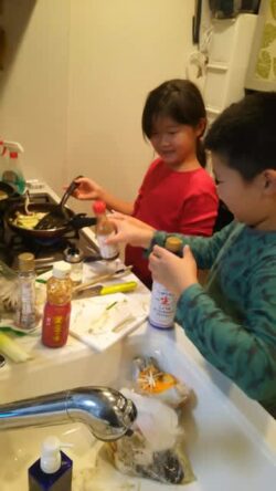 仲良く夕飯作り