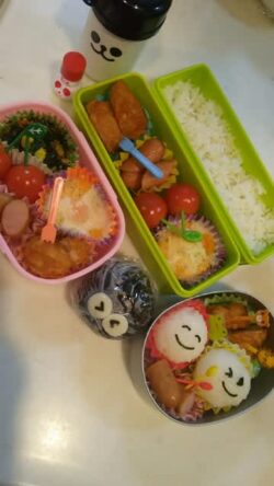今日は全校遠足の日。 いい天気で良かった(*^^*) いつもながらの詰めるだけ弁当(^_^;) 今日は快斗の分も☆