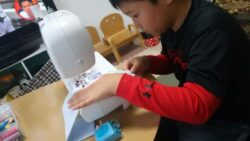 家庭科で裁縫をしている5年生、颯斗。 細かい作業が好きなだけあって、ミシンにも興味があるらしい(*^^*)