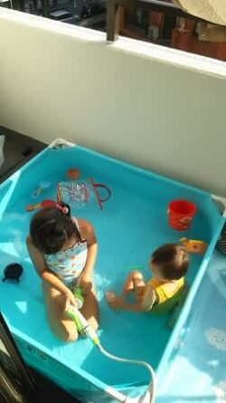 毎日遊んでばかり…。 たまには家事もしないとね(^_^;) というわけで、今日はベランダプールで我慢してもらった(^^) 小学生でもまだまだ楽しめるのね~(笑) この間に私はお掃除、お掃除~